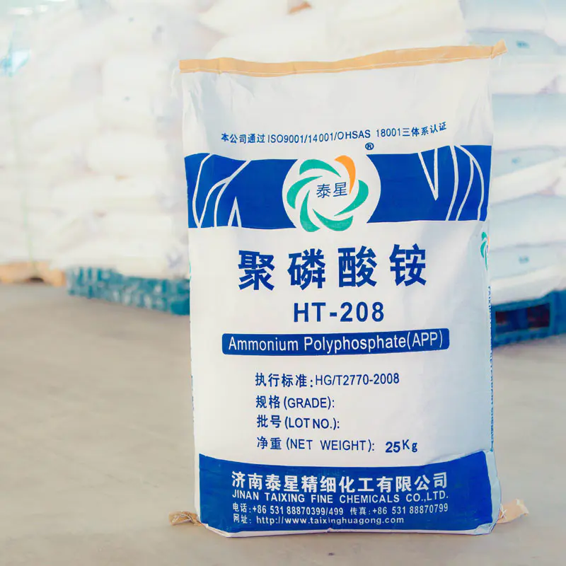 Ammoniumpolyfosfaat-app (n = 1000) is een vlamvertragend op anorganische fosfor met een chemische formule van (NH₄) ₙ₊₂pₙo₃ₙ₊₁( n = 1000), behorend tot ultrahoge insolueer ammoniumpolyfosfaat van het molecuulgewicht. Het uiterlijk is wit nanoschaal poeder (gemiddelde deeltjesgrootte 2-5 μm), met een extreem hoge thermische stabiliteit (ontledingstemperatuur> 400 ℃), vochtabsorptie <0,1%en vlamvertragende efficiëntie is toegenomen met 50%. Het heeft een hoog gehalte aan P en N-vlamvertragende elementen, goede thermische stabiliteit, bijna neutraal, niet-toxisch en lage rook. Gebruikt in technische kunststoffen, rubberen transportbanden en opgenomen brandvertragende coatings, het heeft een lage oplosbaarheid in water, lage verwerkingsviscositeit en hoge vlamvertraging. Bij gebruik in coatings heeft het een betere reologie en stabiliteit. Met dezelfde toevoegingshoeveelheid heeft de ammoniumpolyfosfaat -app van Taixing (n = 1000) een hogere expansiesnelheid en een dichtere koolstoflaag, genereren een langere brandbeveiligingstijd.